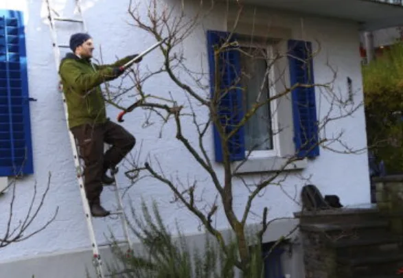 Ein weiterer Schwerpunkt liegt in der Baumpflege. Obstbäume werden gezielt und schonend geschnitten, meist in den Wintermonaten. Dabei wird darauf geachtet, nur so viel wie nötig zu entfernen, damit die Bäume gesund bleiben und sich optimal entwickeln können. Auch grössere Bäume werden individuell beurteilt und fachgerecht gepflegt.